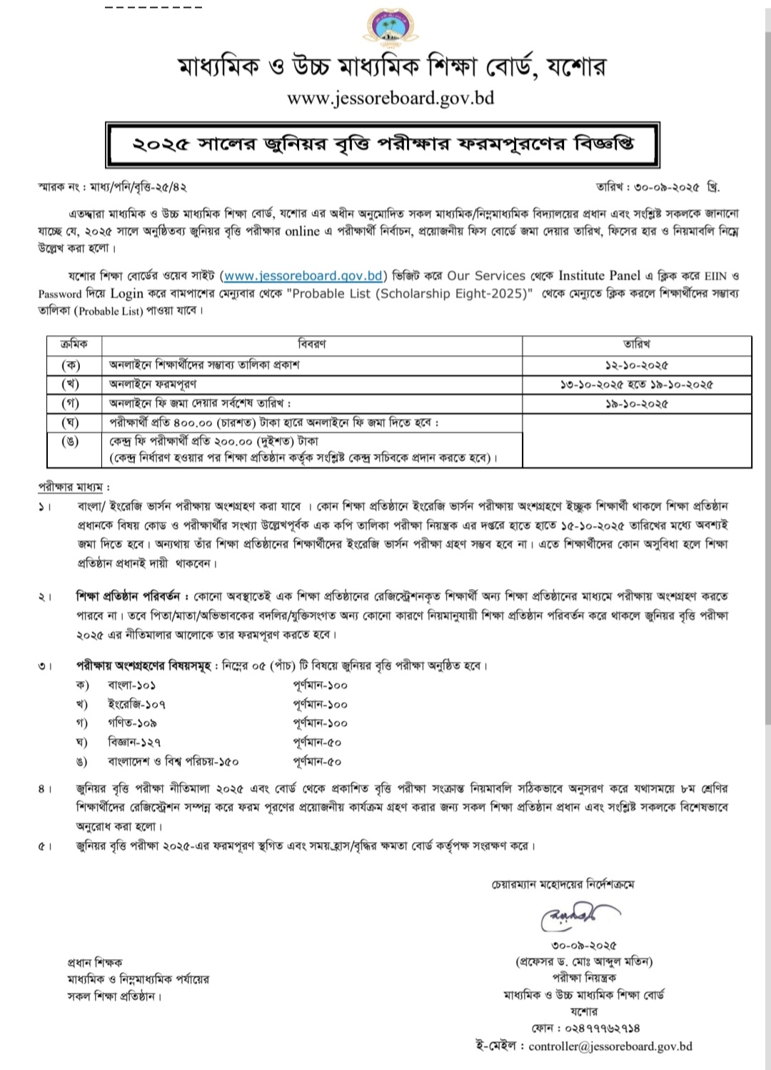 ২০২৫ সালের বৃত্তি পরিক্ষার সময়সূচি। |